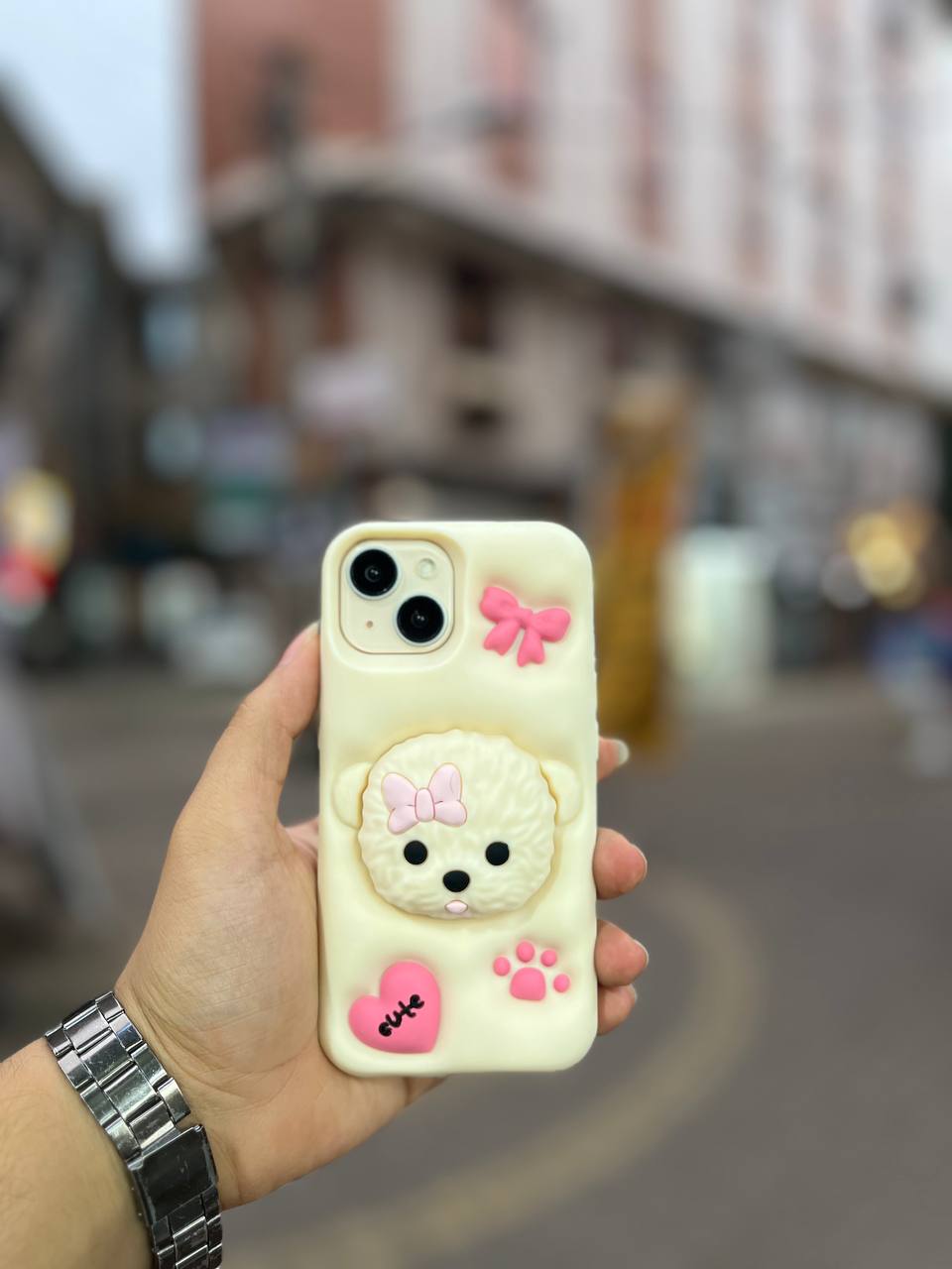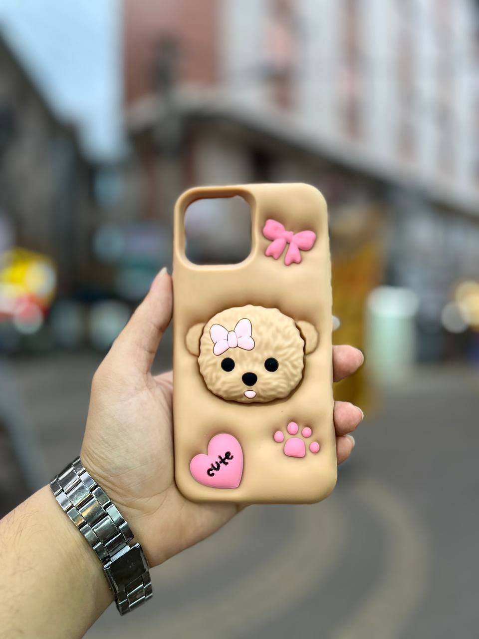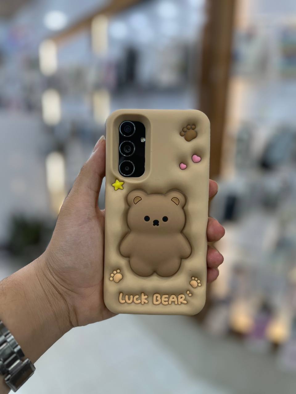 قاب سلیکونی خرسی در دو رنگ کرم و نسکافه ای قابلیت پاپ سوکت.